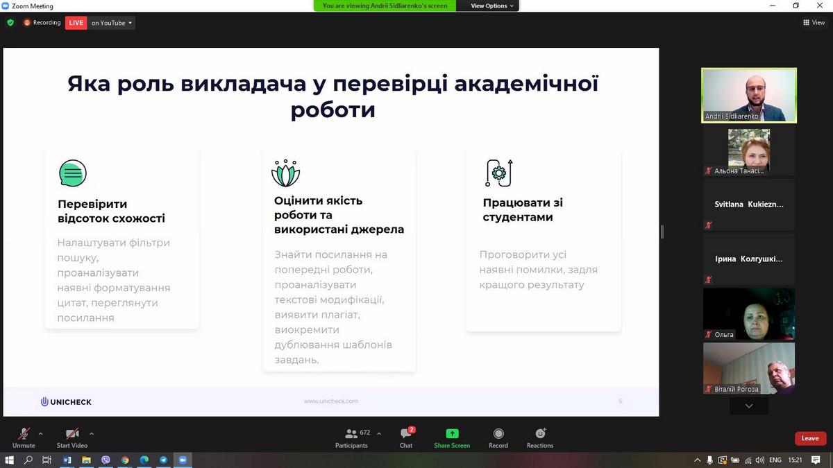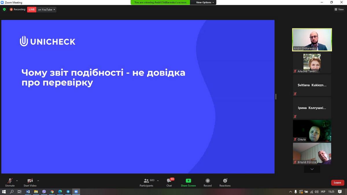 22 квітня 2021 року слухачі Бізнес-школи ВТЕІ КНТЕУ брали участь у вебінарі "Аналізуємо звіт про перевірку на плагіат" від Unicheck та Academic IQ.