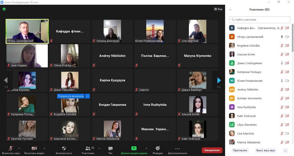 Учасниками семінару стали понад 60 слухачів, в т.ч. викладачі кафедри фінансів, здобувачі освітнього ступеня «молодший бакалавр», «бакалавр», «магістр» спеціальності 072 «Фінанси, банківська справа та страхування» та здобувачі освітнього ступеня «бакалавр» спеціальності 071 «Облік та оподаткування». Під час лекції здобувачі ознайомились з основними тенденціями бюджетної політики субнаціонального рівня, динамікою надходжень до місцевих бюджетів, зокрема, територіальних громад Вінниччини.