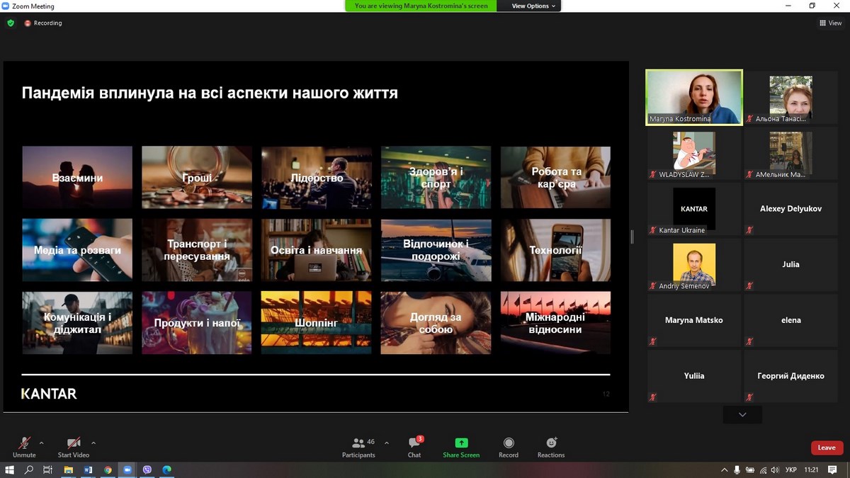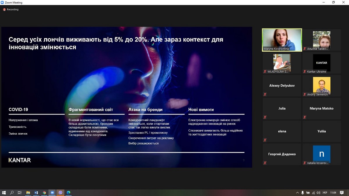 29 квітня 2021 року викладачі ВТЕІ КНТЕУ та здобувачі вищої освіти брали участь у вебінарі «Весняне оновлення бізнесу або кращий час для інновацій» – від провідної у світі дослідницької компанії – «Kantar Україна» та Марини Костроміної, Account Director Kantar Ukraine.