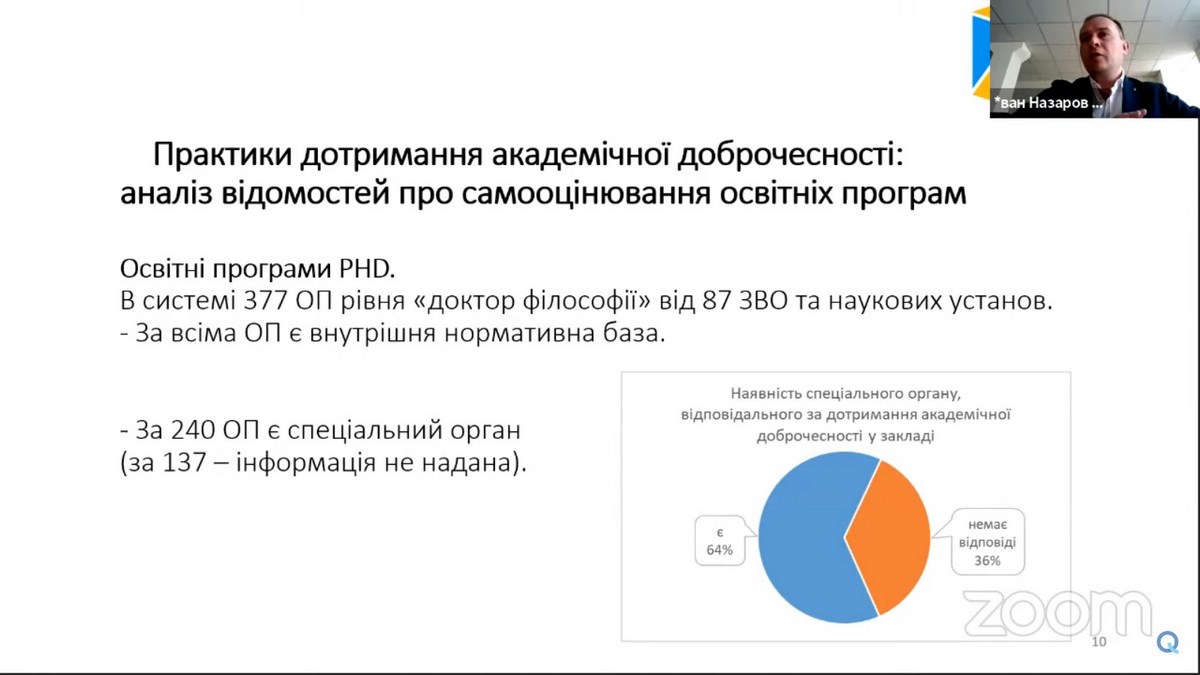 Важливою для учасників Бізнес-школи ВТЕІ КНТЕУ була інформація про зміни в нормативно-правовій базі з академічної доброчесності, про практичне впровадження практик відповідальності за порушення академічної доброчесності, представлення та обговорення проєкту Закону «Про академічну доброчесність».