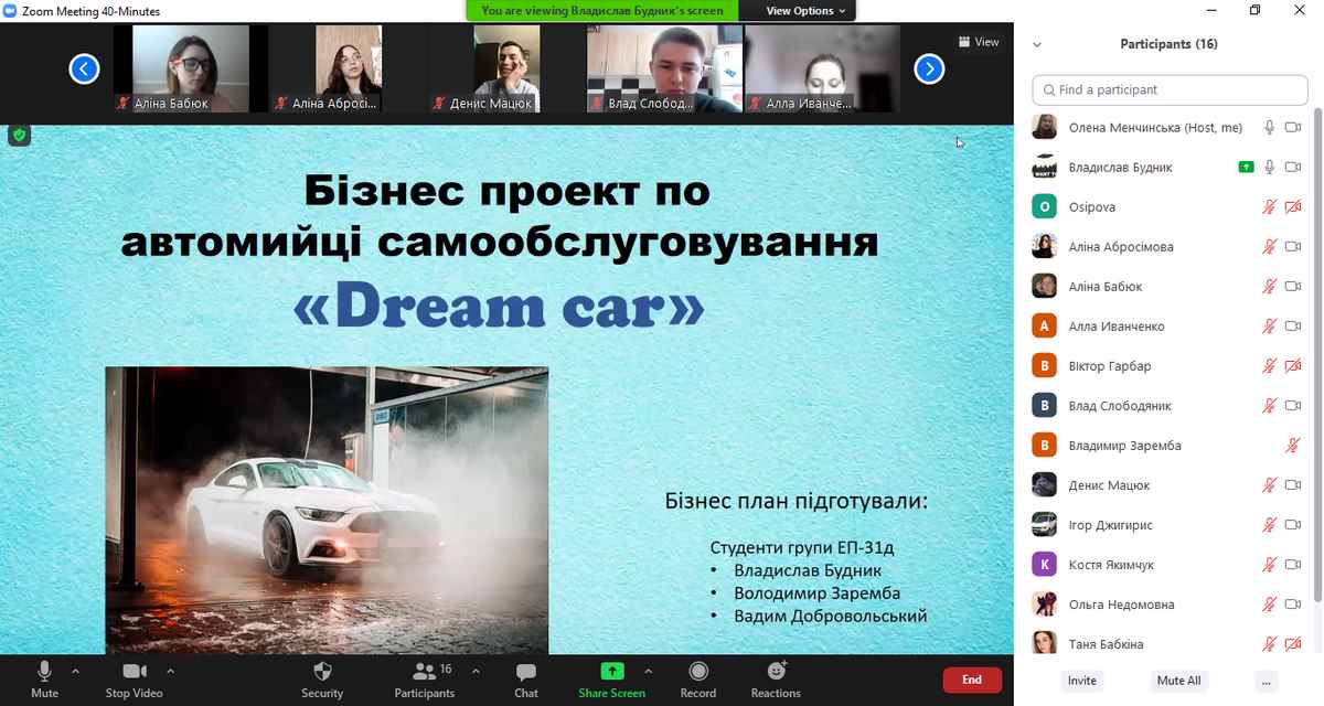 Грамоти за зайняте ІІ місце – бізнес-план відкриття кав’ярні «СoffeЙочік» (Іванченко Алла, Якимчук Костянтин, ЕП-11дс) бізнес-проєкт відкриття автомийки самообслуговування «Dream car» (Заремба Володимир, Будник Владислав, Добровольський Вадим, ЕП-31д).