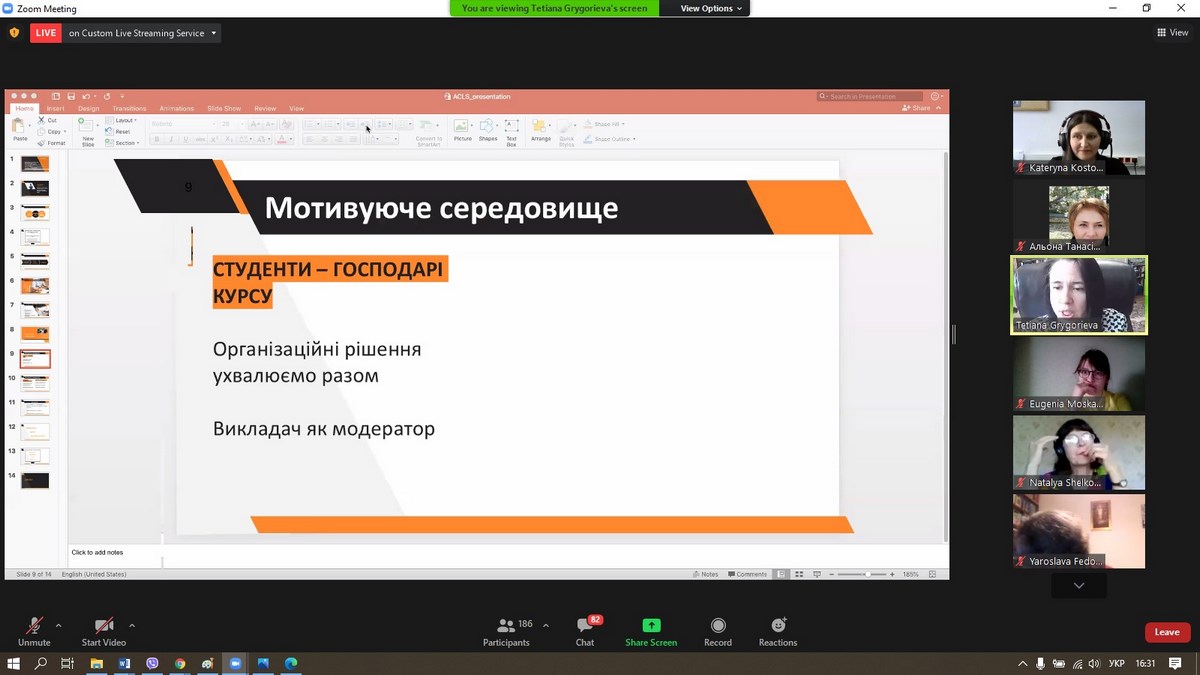 Спікер вебінару – Тетяна Григор'єва розглянула теоретичні та практичні аспекти написання дослідницьких робіт (курсових та дипломних), визначила переваги від запровадження курсу з написання дослідницьких робіт для здобувачів вищої освіти, наукових керівників, кафедри, а також обґрунтувала позитивний вплив таких курсів на якість освіти в цілому. Цікавим став досвід спікера щодо організації наукової роботи здобувачів вищої освіти. Представлення матеріалу супроводжувалося власними прикладами спікера.