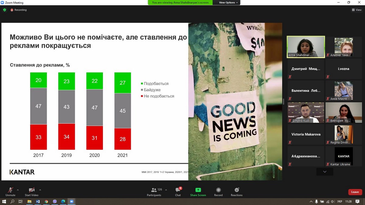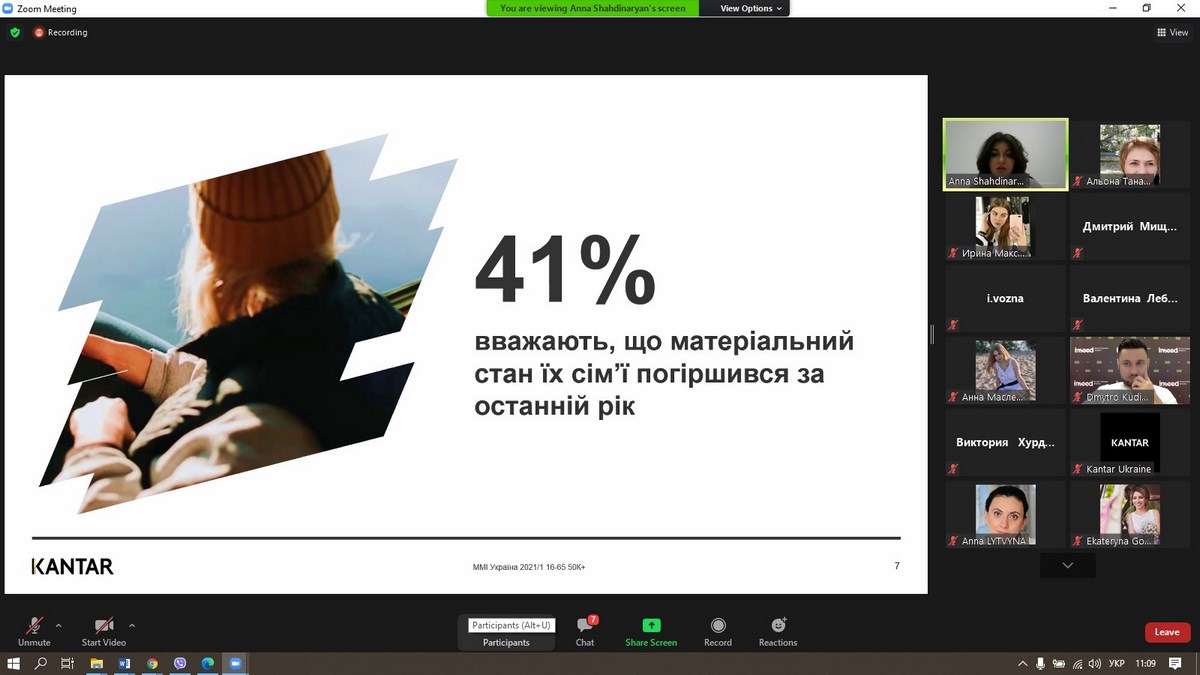 27 травня 2021 року викладачі та здобувачі вищої освіти ВТЕІ КНТЕУ брали участь у вебінарі «Споживацькі настрої українців 2021», який проводила Анна Шахдінарян, Account Director Kantar Ukraine за організації провідної у світі дослідницької компанії – «Kantar Україна».