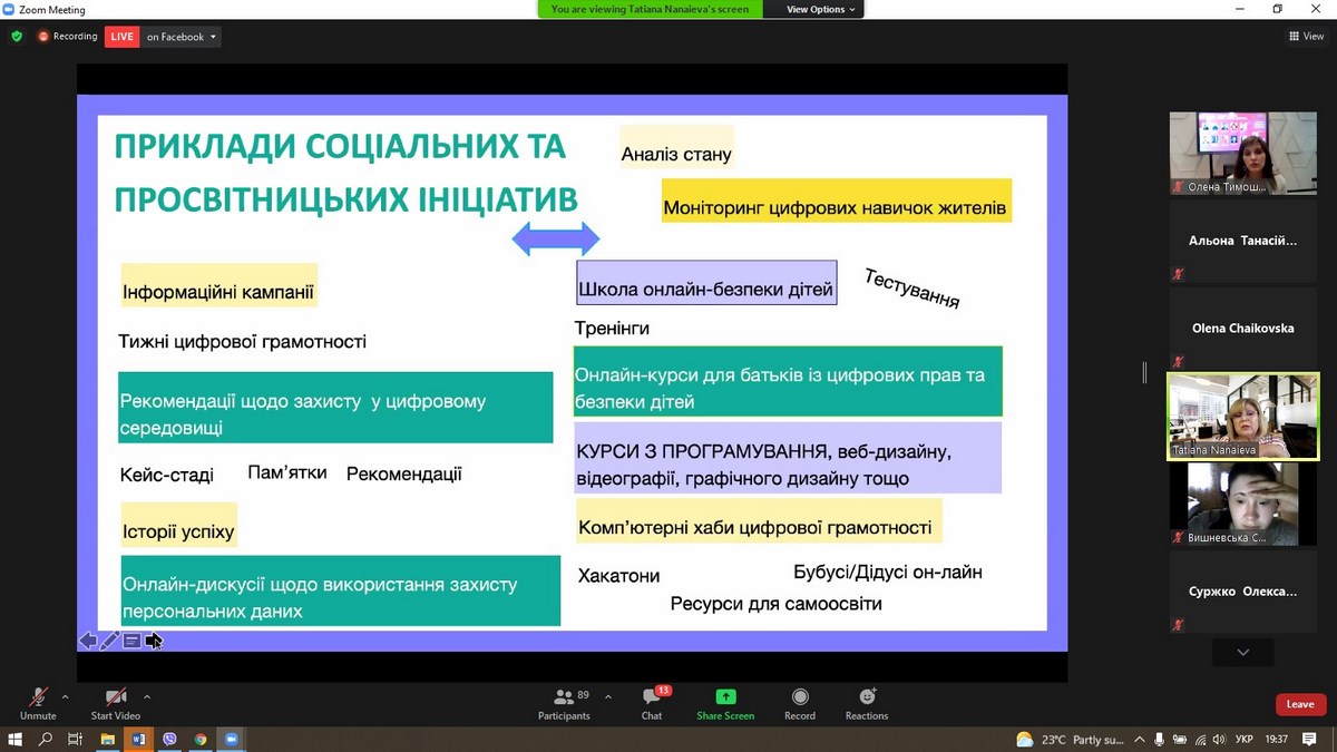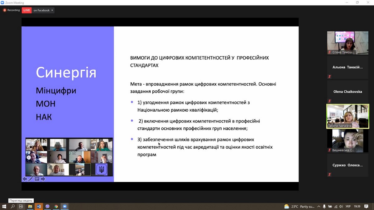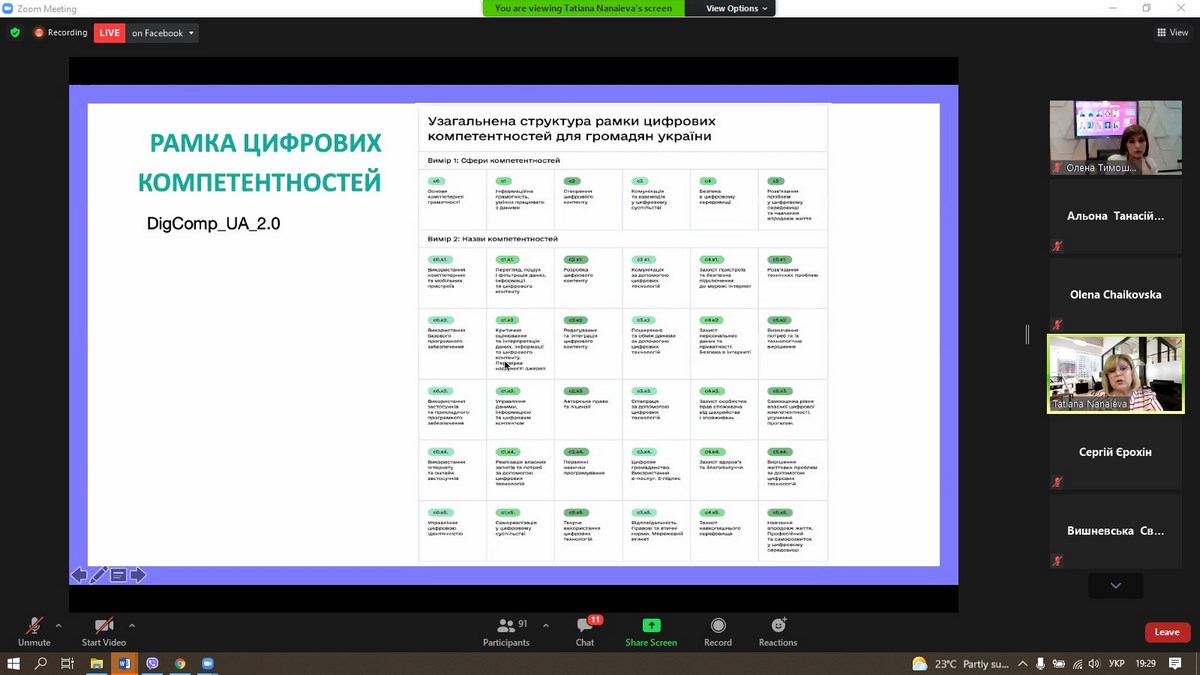 Тетяна Нанаєва, Експерт Мінцифри з цифрових компетентностей, Голова Експертно-консультативного комітету з цифрових технологій в освіті при МОН України презентувала цифрові компетентності в умовах інформаційного суспільства, окреслила важливість врахування рамки цифрових компетенцій при розробці професійних стандартів.