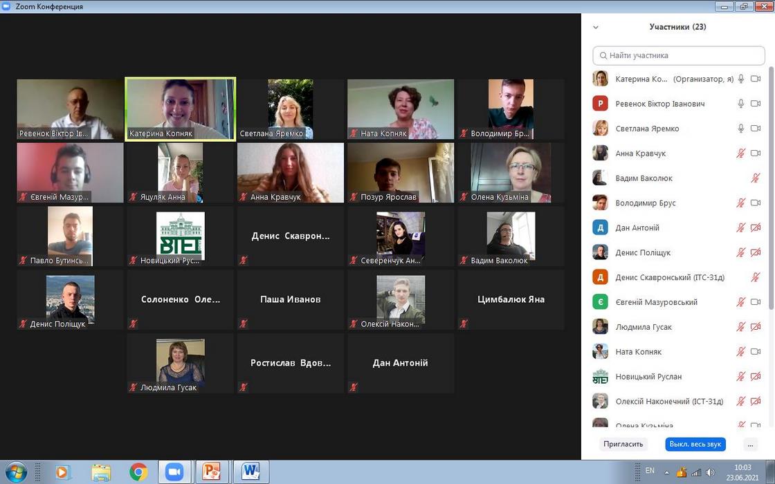 23 червня 2021 року на базі кафедри економічної кібернетики та інформаційних систем відбувся науково-практичний семінар на тему «Комунікаційні технології в менеджменті, бізнесі, освіті», який проходив у режимі online на платформі Zoom. В роботі семінару взяли участь викладачі Вінницького національного медичного університету ім. М. І. Пирогова, Державного університету інфраструктури та технологій, Вінницького торговельно-економічного інституту КНТЕУ та здобувачі освітнього ступеня «бакалавр» спеціальності «Інформаційні системи та технології» освітньої програми «Інформаційні технології у бізнесі».