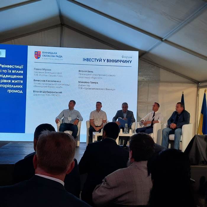 Панель 3 – Реінвестиції в Україні та їх вплив на підвищення рівня життя територіальних громад, під час якої спікери обговорювали особливості реалізації інвестиційних проєктів на ринку інтермодальних перевезень на прикладі ТОВ «Глобал Оушен Лінк»; визначали роль громадських об’єднань промислових підприємств як акселератора інвестиційних і реінвестиційних процесів в регіонах; поділилися успішним досвідом реалізації реінвестиційних проєктів шляхом впровадження інноваційних розробок в агропромисловому секторі економіки України на прикладі ТОВ «FRENDT»; визначили важливість впливу діяльності інноваційного агропромислового кластера «AgroVin» на розвиток потенціалу регіону; обговорювали практичні аспекти організації вінницького кластера приладобудування та автоматизації.