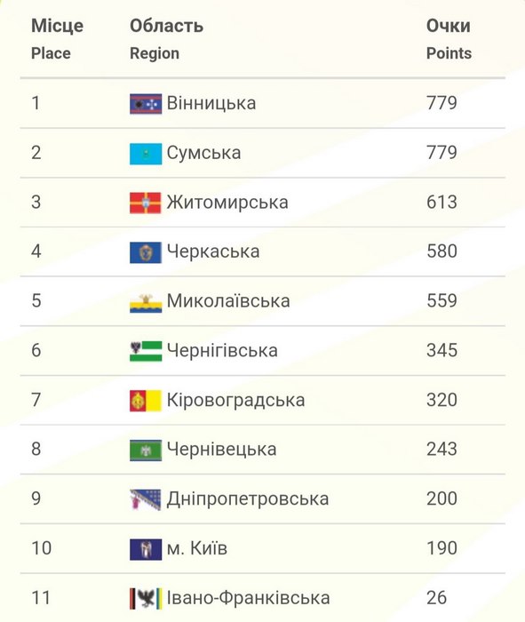 За результатами змагань команда області посіла І місце та отримала кубок переможців серед збірних команд областей України.