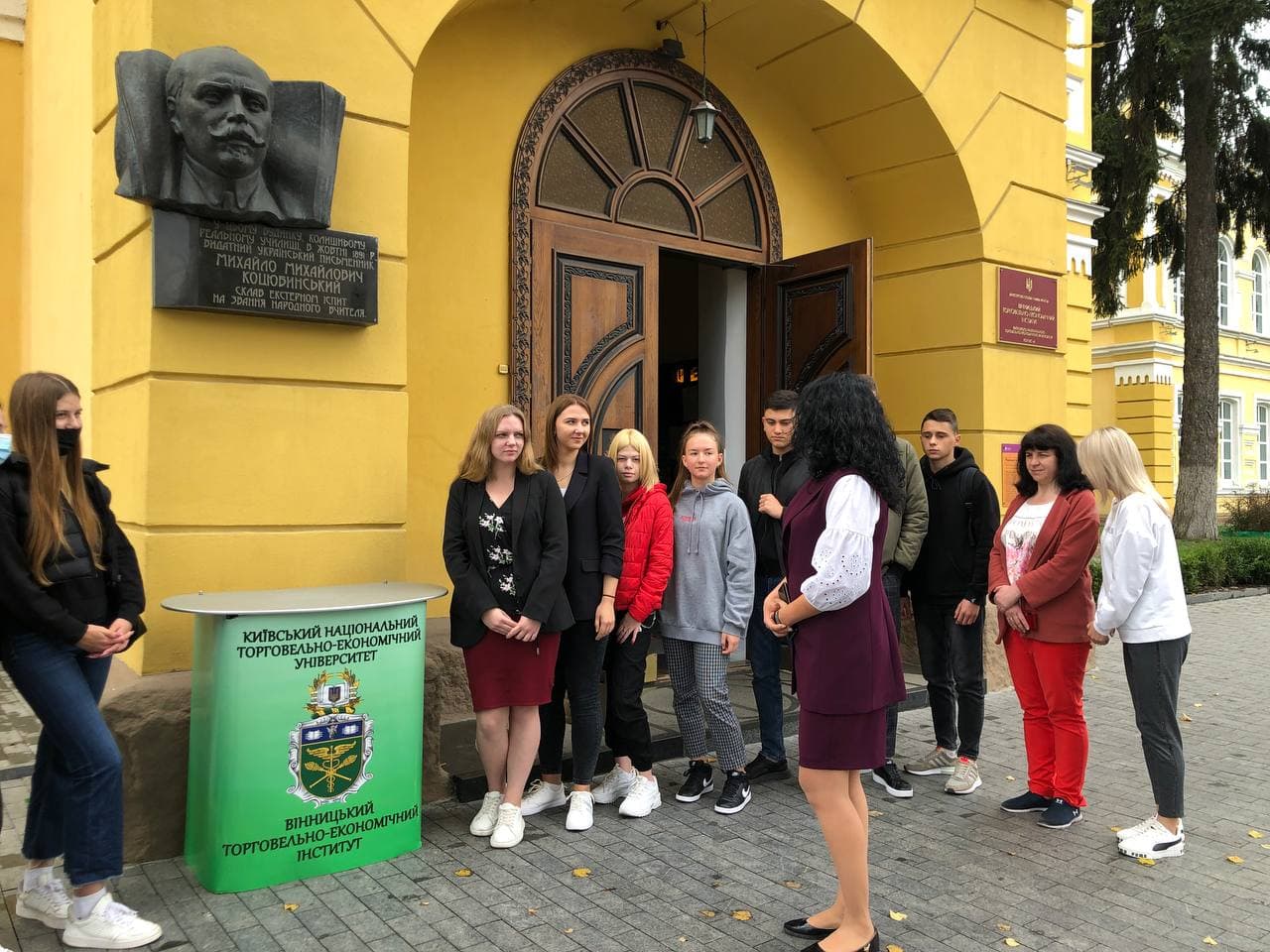 17 вересня 2021 року адміністрація інституту, студенти та співробітники бібліотеки взяли участь у покладанні квітів до барельєфу письменника Михайла Коцюбинського, що знаходиться на фасаді навчального корпусу №1 ВТЕІ КНТЕУ, до 157 річниці від дня народження видатного українського письменника та громадського діяча. Ім’я цієї видатної особистості пов’язане з Поділлям, адже Вінниця займала особливе місце в житті та творчості письменника. В міському реальному училищі, нині Вінницький торговельно-економічний інститут КНТЕУ, в 1891 році письменник склав екстерном іспит на звання народного вчителя.