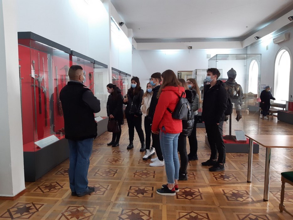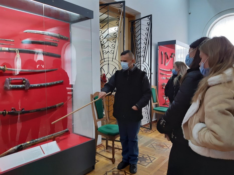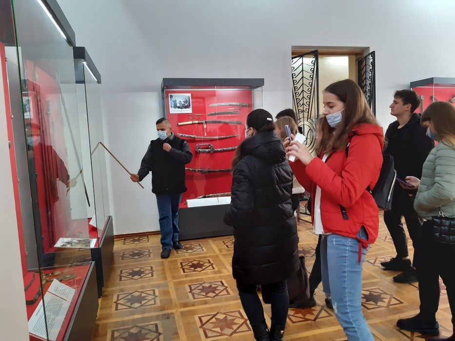 27 жовтня 2021 року здобувачі вищої освіти за спеціальністю 242 «Туризм» (гр. Т-21д) на чолі з асистентом кафедри туризму та готельно-ресторанної справи Катериною Антонюк у рамках вивчення навчальної дисципліни «Організація туризму» відвідали виставку Вінницького обласного краєзнавчого музею «Зброя та військове спорядження: від давнини до сучасності». Прослухавши тематичну екскурсію, здобувачі вищої освіти поповнили багаж своїх знань цікавими подіями та фактами з історичного минулого України та світу.