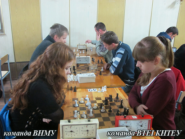 Загальнокомандне місце серед ВНЗ визначається за найменшою сумою місць – очок, показаними студентами команд з 10 видів для ВНЗ 1 групи і 7 видів для II групи. У змаганнях з шахів змагалось 7 збірних команд навчальних закладів. У складі команди нашого інституту виступали – Аліна Подольська, гр. ДФ-32 (4 перемоги, 1 нічия), Андрій Тарнавський, гр. ДФ-32 (1 перемога) і Вадим Пороховий, гр. ДФ-22 (1 перемога). Представляла команду інституту асистент кафедри психології, соціології та права Світлана Сальникова. В результаті проведених змагань наша команда набрала 6,5 очок і зайняла 5 місце, випередивши команди ВДПУ і Вінницького навчально-наукового економічного інституту Тернопільського національного економічного університету.