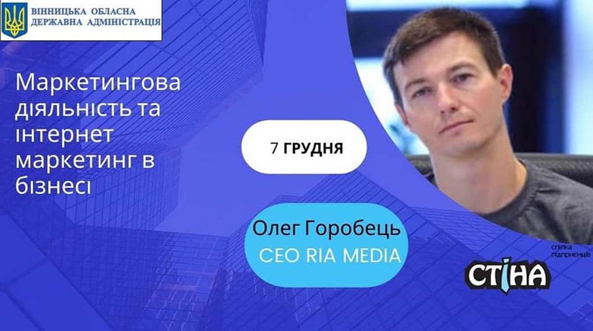 7 грудня 2021 року відбувся 1 модуль навчання для підприємців, а саме – семінар-тренінг на тему "Маркетингова діяльність та інтернет маркетинг в бізнесі", спікером якого став Олег Горобець, CEO RIA MEDIA.