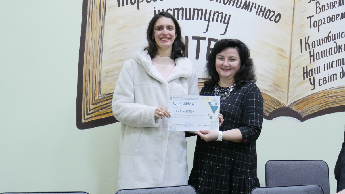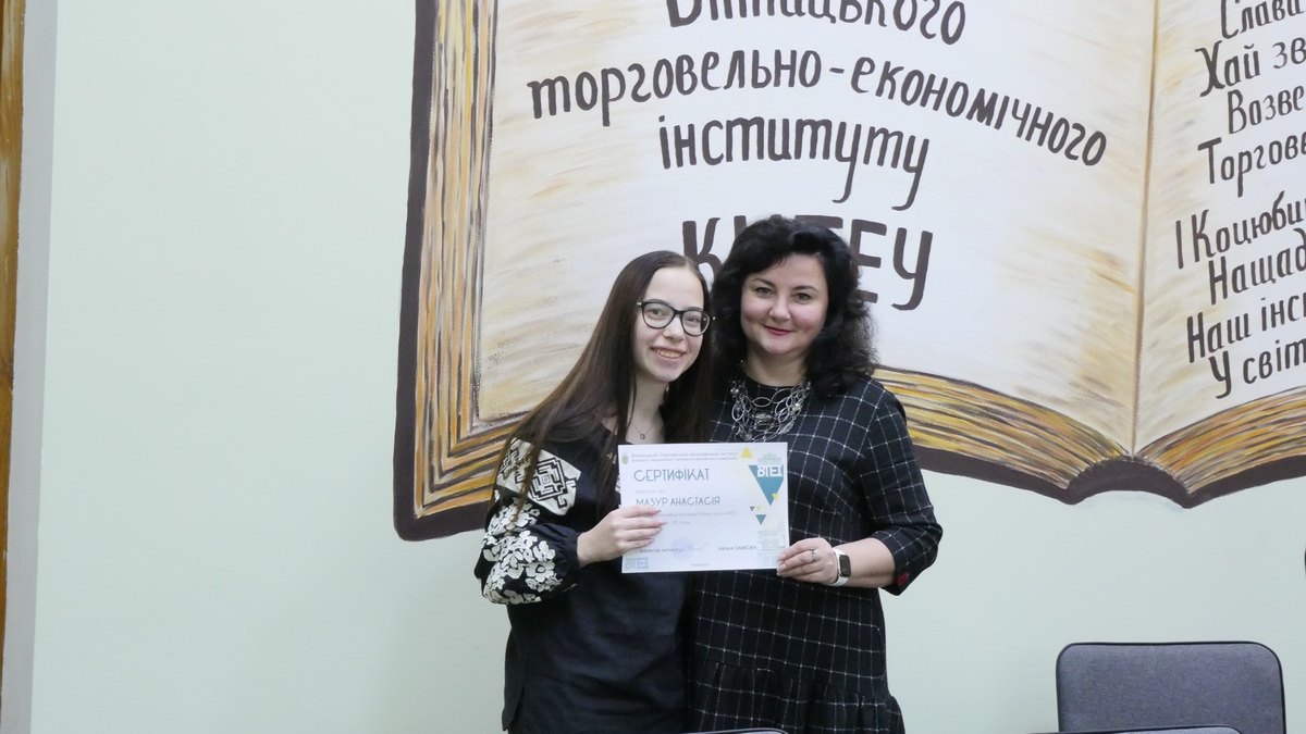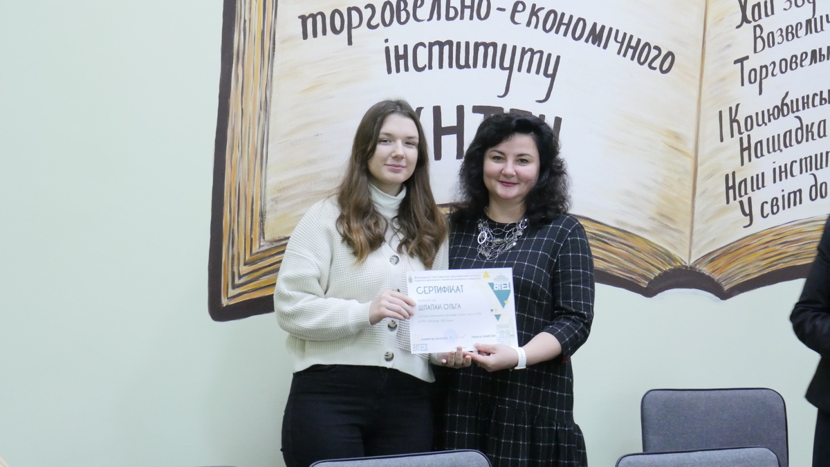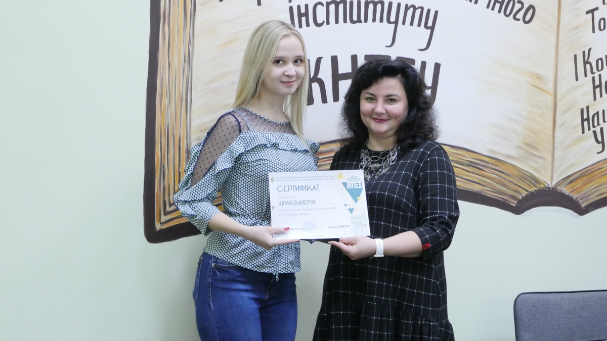 Майже 500 здобувачів вищої освіти Вінницького торговельно-економічного інституту КНТЕУ відвідували заходи, а 40 з них успішно виконали програму та отримали сертифікат Бізнес-школи ВТЕІ КНТЕУ. Сертифікат підтверджує рівень професійної підготовки його власника, і в близькій перспективі виконуватиме рекомендаційну функцію при працевлаштуванні.
