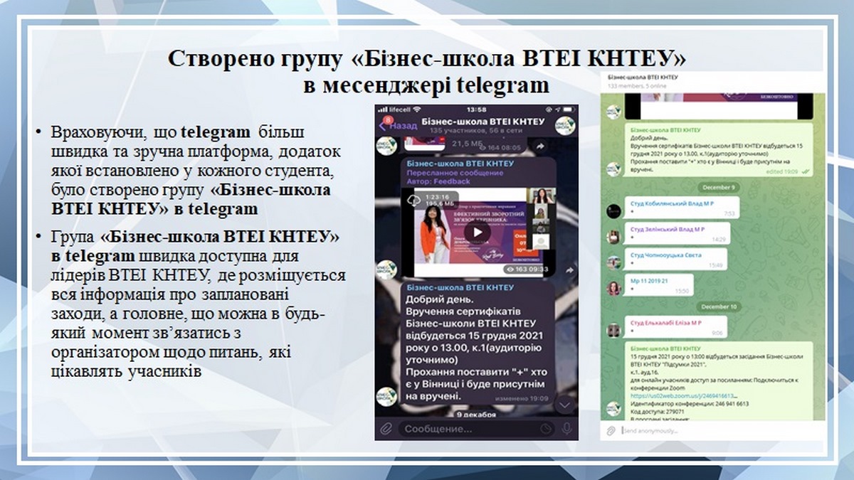 15 грудня 2021 року відбулося засідання Бізнес-школи ВТЕІ КНТЕУ під головуванням директора Вінницького торговельно-економічного інституту КНТЕУ Наталії Замкової.