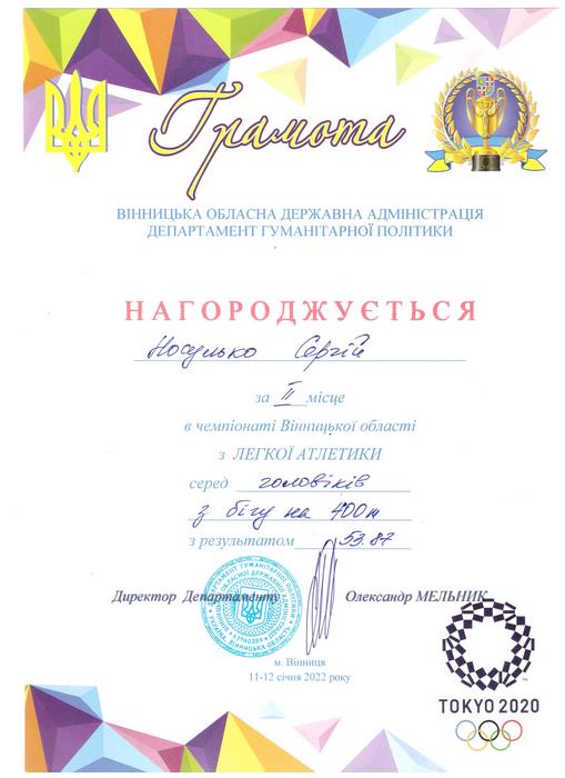 11-12 січня 2022 року студенти ВТЕІ КНТЕУ Носулько Сергій (група МЕВ-21) та Шевчук Вікторія (група ІСТ-11мб) взяли участь у чемпіонаті Вінницької області з легкої атлетики.