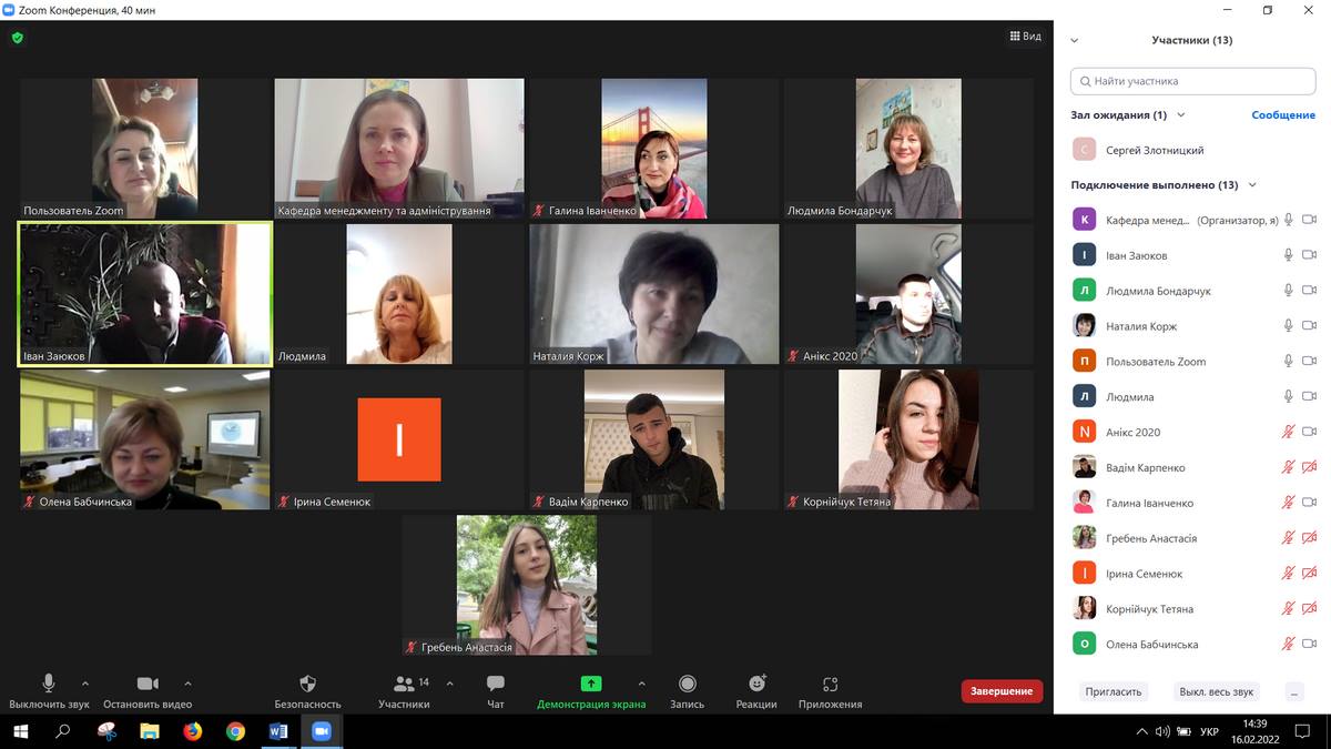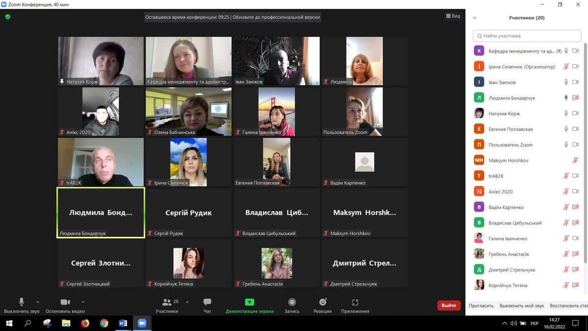 16 лютого 2022 року відбулось засідання робочих груп з розроблення освітніх програм (ОП) «Менеджмент» (молодший бакалавр), «Менеджмент організацій» (бакалавр, магістр), «Менеджмент зовнішньоекономічної діяльності» (бакалавр).