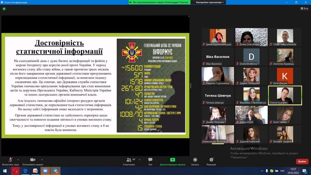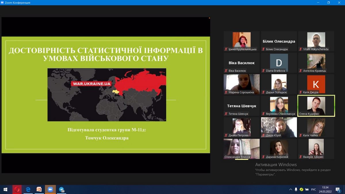 На базі кафедри обліку та оподаткування відбулося відкрите засідання наукового гуртка з дисципліни «Статистика» на тему: «Достовірність статистичної інформації в умовах військового стану