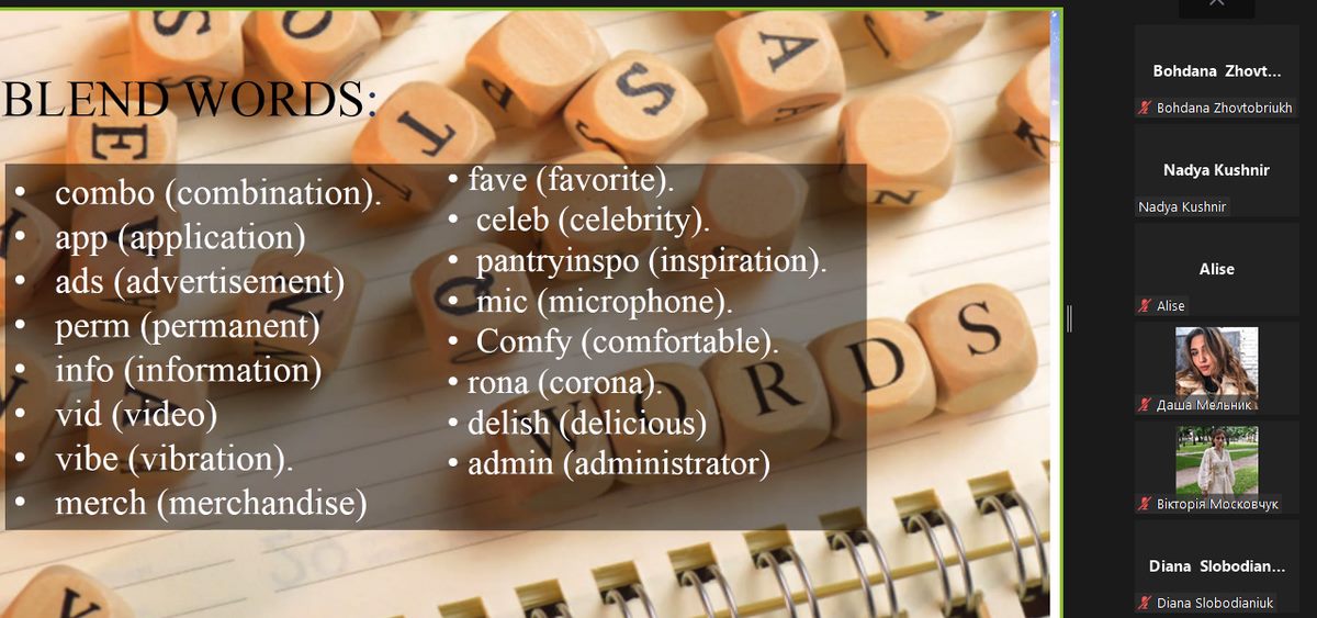 6 квітня 2022 року кафедрою іноземної філології та перекладу Вінницького торговельно-економічного інституту ДТЕУ було проведено відкрите засідання наукового гуртка “Translation Studies” під керівництвом доц. Лариси Довгань на тему “Формування та функціонування неологізмів в сучасній англійській мові”.