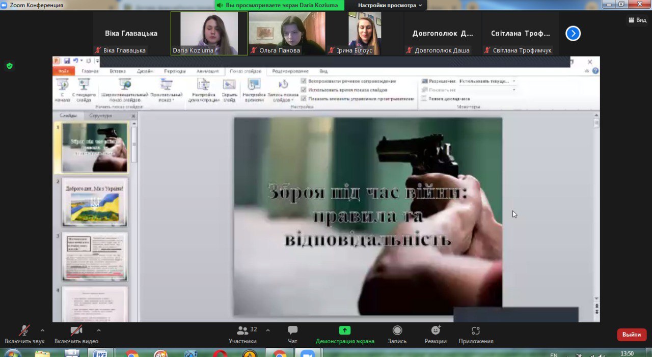 3. Зброя під час війни: правила та відповідальність – доповідачка Дарія Козюма (група ПР-31д).
