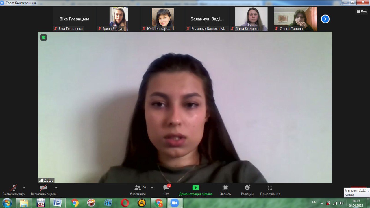 6 квітня 2022 року в режимі онлайн відбулося відкрите засідання наукового гуртка «Феміда» на тему «Кримінальна відповідальність під час воєнного стану» (керівник доцент кафедри права Ірина Білоус).