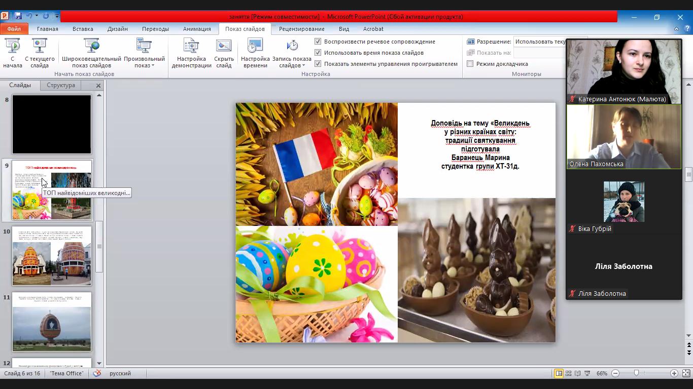 - «Великдень у зарубіжних країнах: традиції святкування» - Баранець Марина (гр. ХТ-31д);
