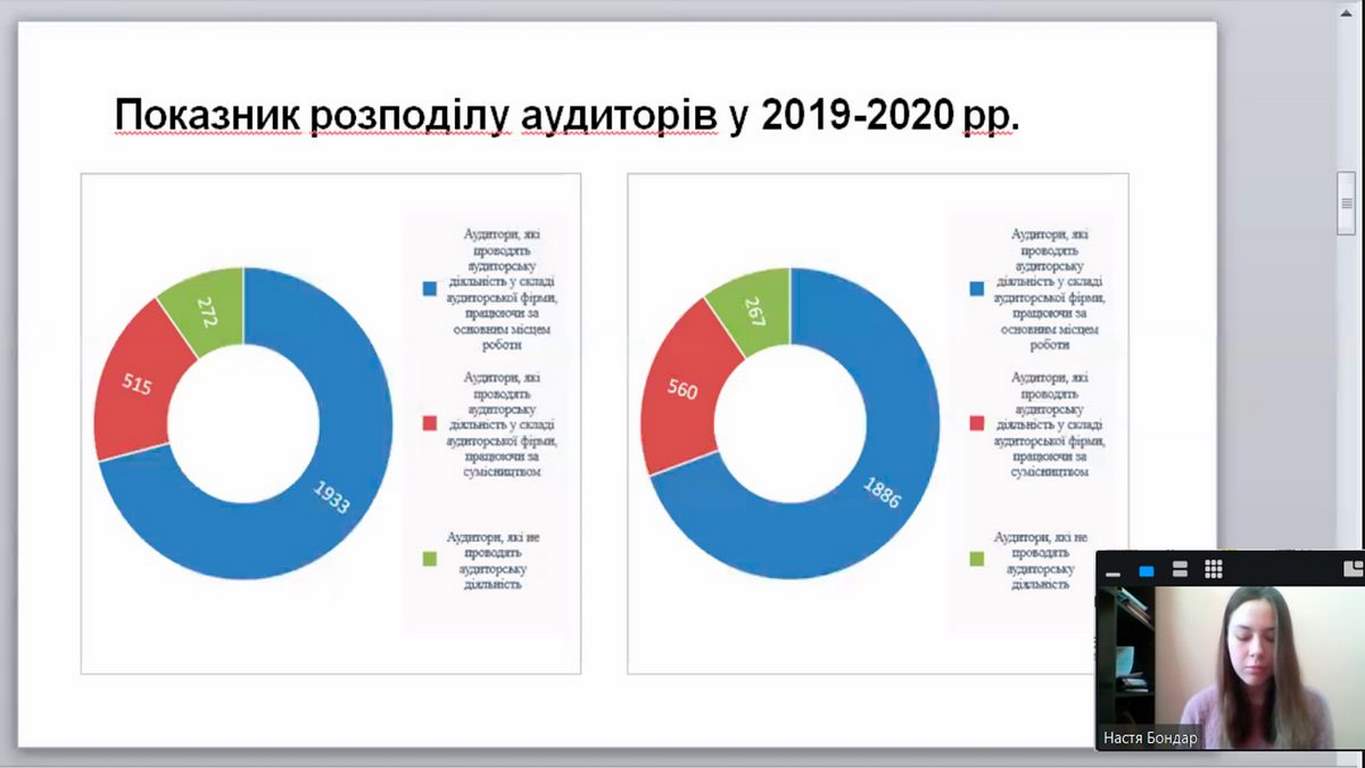 - Анастасія Бондар, студентка 3 курсу гр. ФКА-31д, спеціальності 071 «Облік і оподаткування» з доповіддю на тему «Сучасний стан та функціонування аудиту в умовах воєнного стану в Україні» (науковий керівник – к.е.н., доцент Ірина Крупельницька);