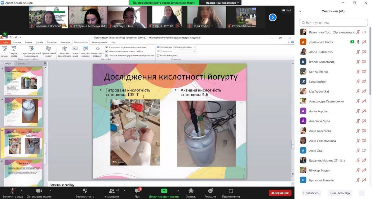 8. Думанська Настасія, здобувачка вищої освіти 4 курсу, групи ХТ-41д, з темою доповіді: «Удосконалення технологічного процесу виробництва йогуртів» (науковий керівник – к.т.н., доцент Тетяна Семко).