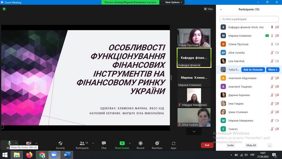 Доповідач: Клименко Марина, 3 курс, група ФБСС-32д.