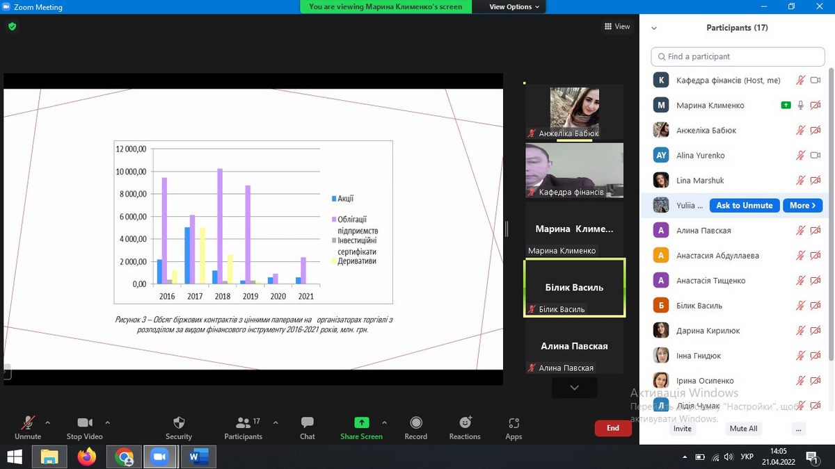 У засіданні взяли участь 46 осіб, серед них здобувачі вищої освіти ФБСС-41д, ФБСС-31д, ФБСС-32д та інші; науково-педагогічні працівники кафедри фінансів.