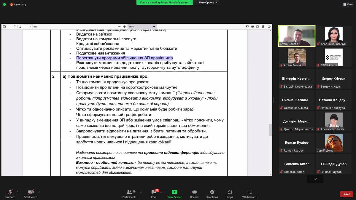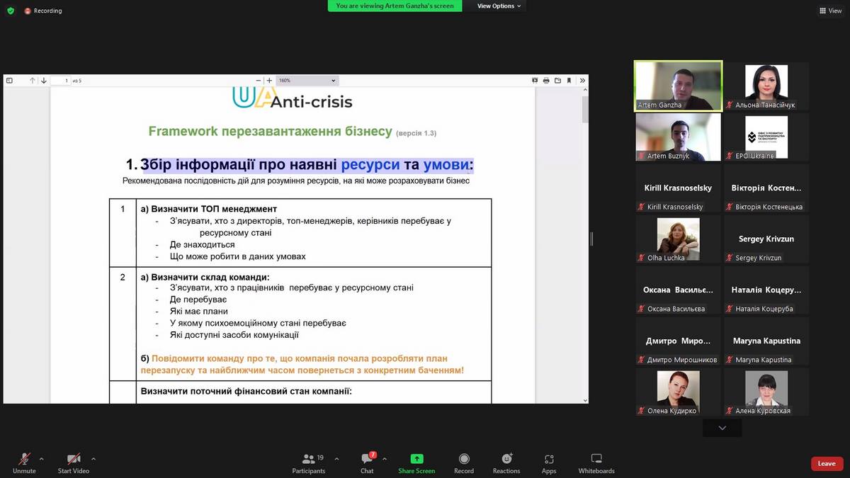 Участь слухачів Бізнес-школи ВТЕІ ДТЕУ у вебінарі «Чекліст для перезапуску бізнесу» в рамках проєкту Дія.Бізнес «UA Anti-crisis»