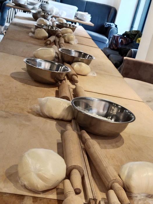 Шеф-кухар з ресторану «Лезгинка» – Андрій Поліщук, поділився секретами приготування смачного хачапурі з сиром. На майстер-класі з приготування хачапурі учасники навчилися тонкощам і здобули майстерність приготування смачної страви, а також вчилися справлятися з стресом, спричиненим бойовими діями та переїздом на інше місце проживання.