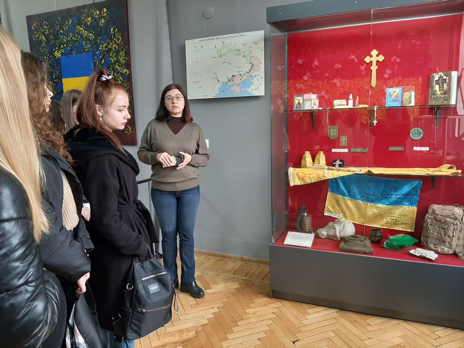 У виставкових залах здобувачі вищої освіти мали можливість оглянути особисті речі, світлини, документи, військову форму та спорядження Героїв Небесної Сотні та полеглих воїнів російсько-української війни. Метою екскурсії було виховання патріотизму як складової світогляду студента, почуття відповідальності за майбутнє, гордості за історичні надбання та свідомого визнання масштабів війни, яка розпочалась 24 лютого 2022 року.