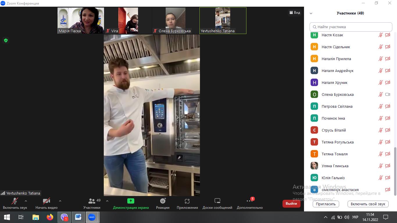 14 листопада 2022 року здобувачі вищої освіти за спеціальністю 241 «Готельно-ресторанна справа» та науково-педагогічні працівники кафедри туризму та готельно-ресторанної справи відвідали гостьову лекцію на тему «Основи пароконвектоматів: їх функції та роль на кухні закладів ресторанного господарства».