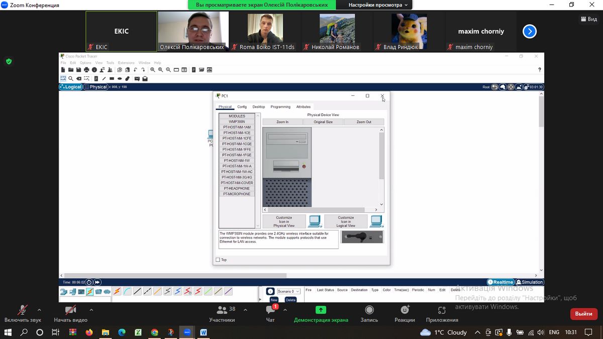 29 листопада 2022 року кафедра економічної кібернетики та інформаційних систем провела майстер – клас на тему «Основи моделювання комп'ютерних мереж в середовищі Cisco Packet Tracer», який відбувався під керівництвом Олексія Полікаровських, д.т.н., професора Одеського національного морського університету кафедри технічної кібернетики й інформаційних технологій ім. професора Р. В. Меркта. На майстер-класі були присутні 39 здобувачів вищої освіти спеціальності «Інформаційні системи та технології» та викладачі кафедри економічної кібернетики та інформаційних систем, у т.ч. зав.кафедри Гусак Л.П., професор Романюк В.В., доценти Кузьміна О.М. та Яремко С.А.
