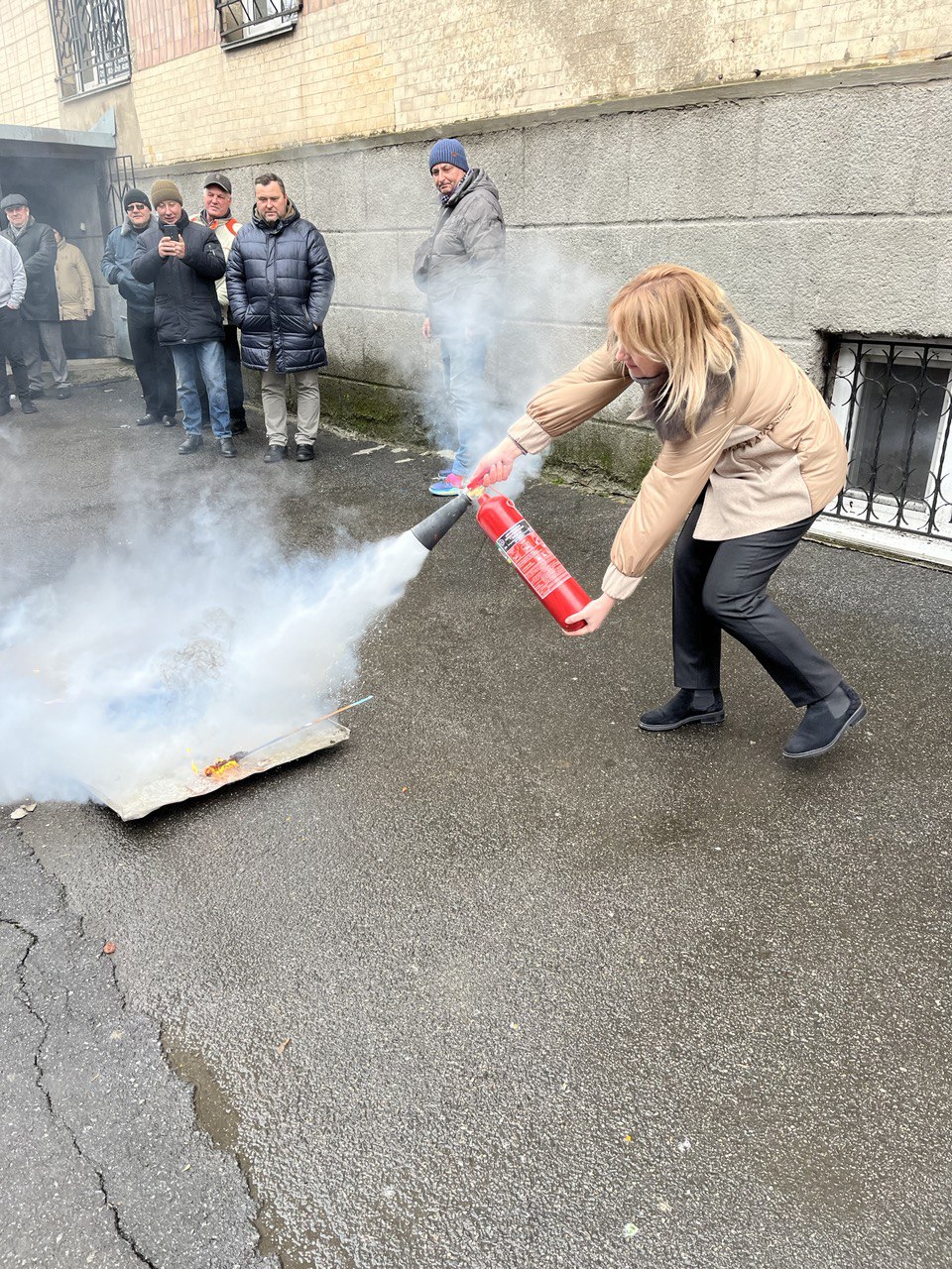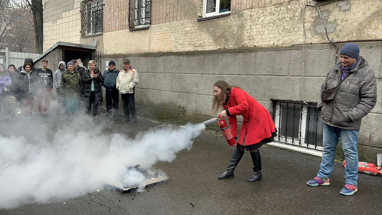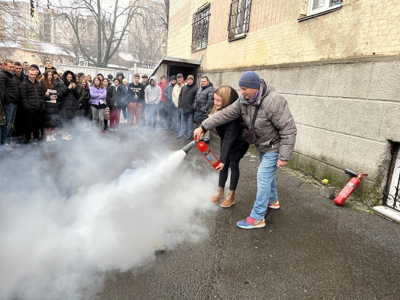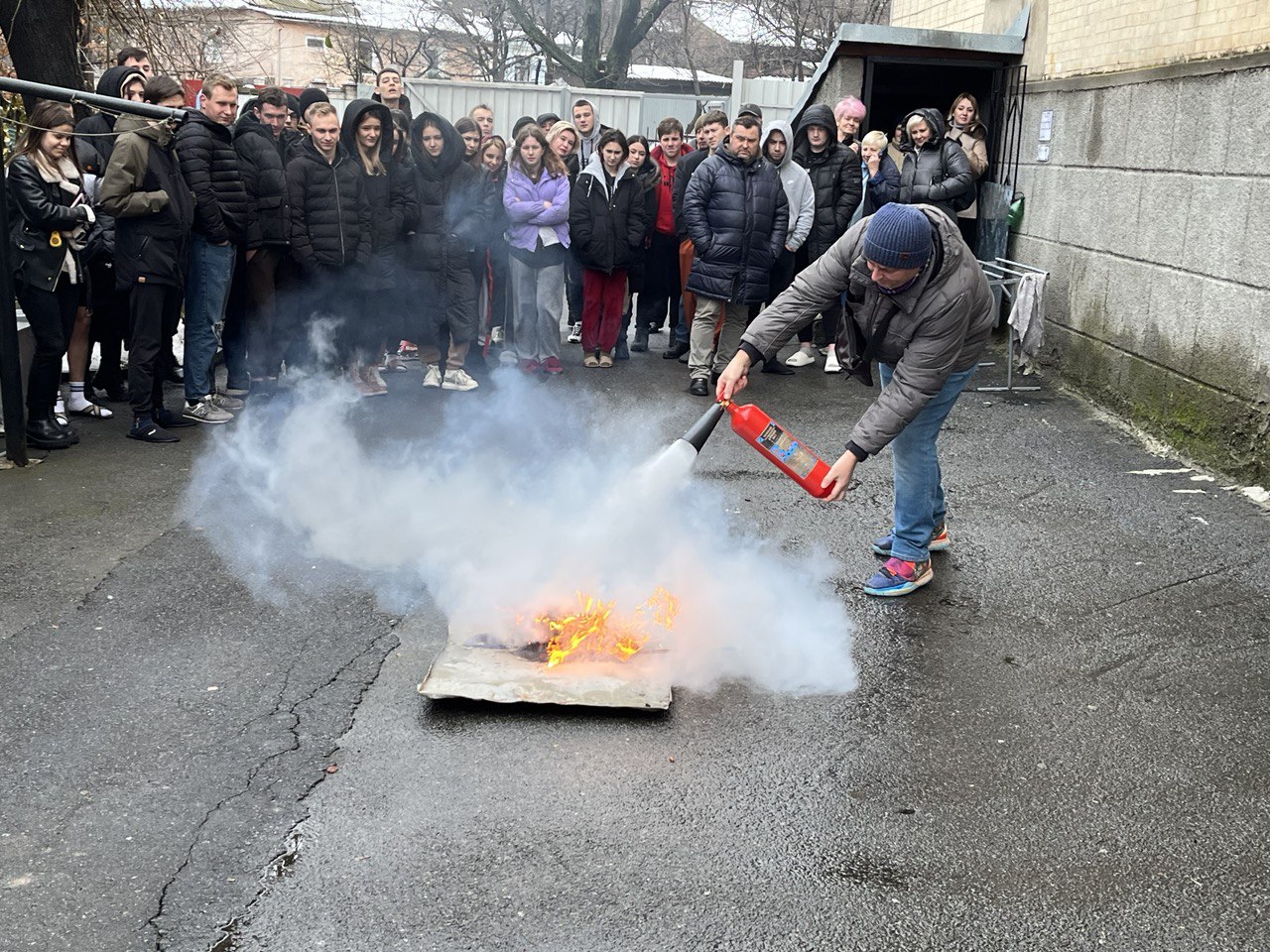 Під час тренування студенти дотримувалися усіх правил безпеки та здобули практичні навички щодо користування вогнегасником та поведінки під час небезпечних ситуацій.