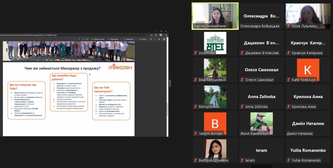 8 грудня 2022 року на базі Центру розвитку кар'єри ВТЕІ ДТЕУ для студентів була проведена онлайн-зустріч із директором з управління персоналом компанії MAKOSH - Венікайтене Каріною.