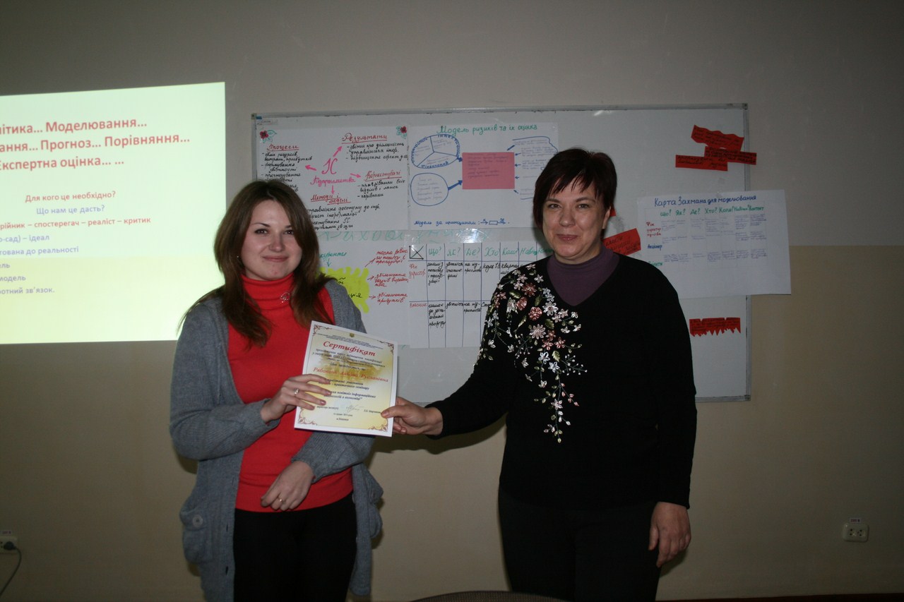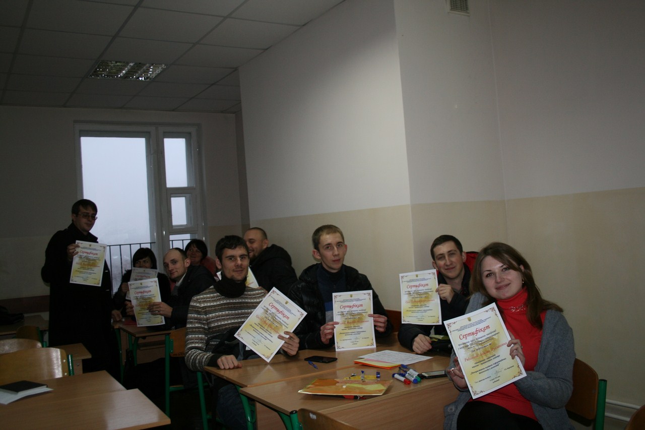 Гостей та учасників привітала керівник семінару, завідувач кафедри економічної кібернетики та інформаційних систем ВТЕІ КНТЕУ, проф. Ліщинська Л.Б. Головний доповідач, завідувач науково-методичним відділом ВНАУ, доц. Коваленко О.О. розглянула практичні аспекти впровадження інформаційних технологій та використання моделей на підприємстві. Після постановки задачі тренінгу учасники семінару були розділені на 4 команди. На етапі фалісітації цілей команди представили своє бачення основної мети моделювання. Друга частина семінару пройшла під гаслом «Ставте амбіційні цілі та досягайте їх!» Кожна команда повинна була «продати» створену модель замовникам, продемонструвати переваги та економічну ефективність від реалізації запропонованої моделі. Коваленко О.О. вручила сертифікати про підвищення кваліфікації з напряму «Економіка та підприємництво» учасникам семінару.