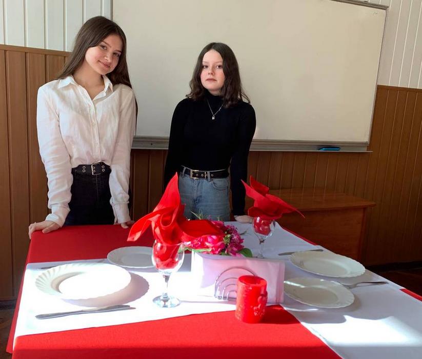 З нагоди Дня всіх закоханих, 14 лютого 2023 року для учнів 9-Б та 10-А класу КЗ «Вінницький ліцей №10» асистент кафедри туризму та готельно-ресторанної справи Олена Пахомська провела майстер-клас «Святкове тематичне сервірування столу та техніки складання столових серветок». Мета заходу - розвиток естетичного смаку, моторики рук, рухової та емоційної пам'яті, формування знань про столовий посуд, приладдя, столову білизну, вміння підбирати їх у процесі сервірування тематичного святкового столу.