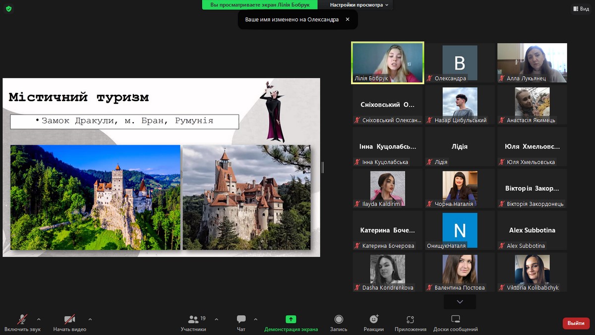 3 березня 2023 року відбулося засідання наукового гуртка кафедри туризму та готельно-ресторанної справи «Школа туристичної індустрії» на тему «Темний туризм: становлення та популярні напрямки» (керівник гуртка старший викладач Алла Лук'янець).