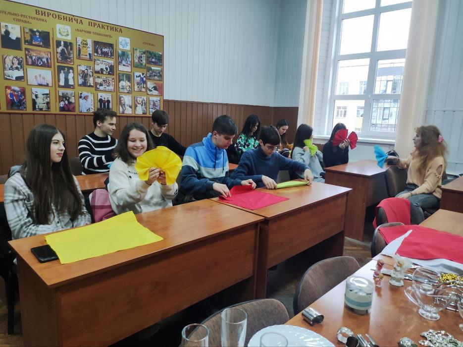 3 березня 2023 року для учнів 10-А та 10-Б класу КЗ «Вінницький гуманітарний ліцей №1 імені М.І. Пирогова» асистент кафедри туризму та готельно-ресторанної справи Олена Пахомська провела майстер-клас «Святкове тематичне сервірування столу та техніки складання столових серветок». Мета заходу - розвиток естетичного смаку, моторики рук, рухової та емоційної пам'яті, формування знань про столовий посуд, приладдя, столову білизну, вміння підбирати їх у процесі сервірування тематичного святкового столу.