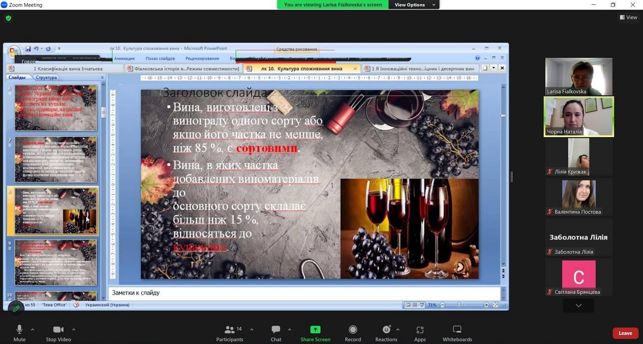 13 березня 2023 року у рамках XI Фестивалю студентської науки кафедрою туризму та готельно-ресторанної справи відбулося відкрите засідання наукового гуртка «Технолог» на тему «Крафтові технології виробництва тихих та ігристих вин» (керівник клубу – Лариса Фіалковська).