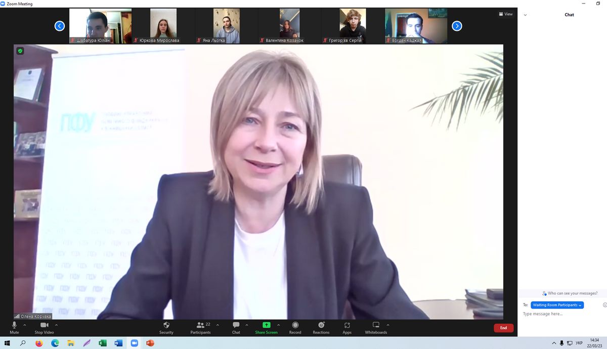 22 березня 2023 року відбувся семінар «Проблеми розвитку пенсійного забезпечення в Україні в контексті соціального захисту» для здобувачів вищої освіти спеціальності 232 «Соціальне забезпечення», спікером на якому виступила начальник Головного управління Пенсійного фонду України у Вінницький області Корчака Олена.