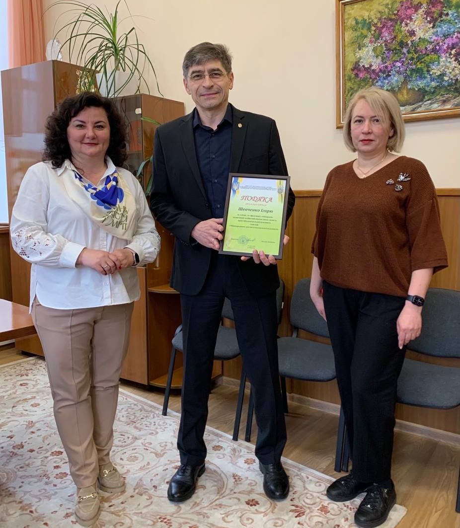 У ВТЕІ ДТЕУ вручено подяку патентному повіреному України Ігорю Шевченко з нагоди Міжнародного дня інтелектуальної власності