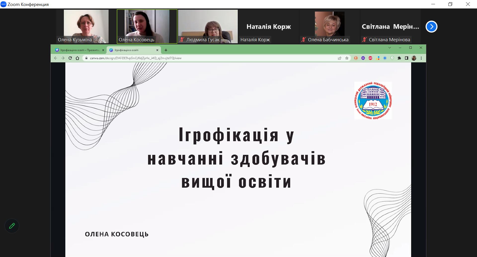 11 травня 2023 року на факультеті економіки, менеджменту та права відбувся Всеукраїнський науково-практичний вебінар «Інтерактивний освітній простір ЗВО» в режимі online на платформі ZOOM. Захід проводився кафедрою економічної кібернетики та інформаційних систем спільно з кафедрою менеджменту та адміністрування. У роботі вебінару взяли участь: Державний університет інфраструктури та технологій, Вінницький національний медичний університет ім. М.І. Пирогова, Вінницький національний технічний університет, Вінницький навчально-науковий інститут економіки Західноукраїнського національного університету, Вінницький державний педагогічний університет імені Михайла Коцюбинського, Інститут гуманітарних наук Державного університету «Одеська політехніка». До уваги учасників вебінару було запропоновано цікаві презентації доповідачів, далі відбулося активне обговорення доповідей, обмін корисним досвідом з організації інтерактивного освітнього простору, навчальних процесів та науково-дослідної роботи у ЗВО.