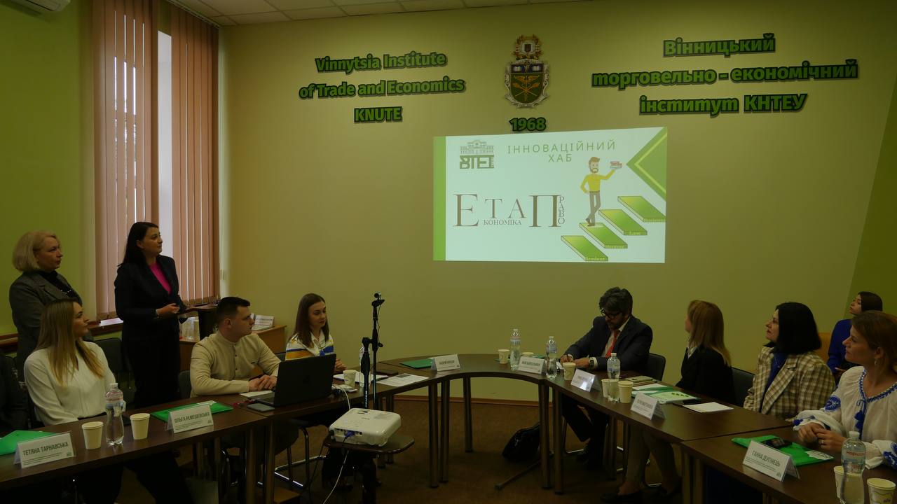 17 травня 2023 року відбулося урочисте відкриття Інноваційного хабу «ЕтаП» на базі Вінницького торговельно-економічного інституту ДТЕУ. В рамках проєкту передбачається створення майданчика для популяризації підприємницької культури та креативного мислення через стимулювання молодіжного підприємництва завдяки синергії академічних знань економічного, правового блоків та практичного експертного досвіду. Було презентовано етапи роботи інноваційного хабу, особливості його реалізації та очікувані результати. В рамках відкриття інноваційного хабу було підписано 5 меморандумів про співпрацю ВТЕІ ДТЕУ з: ГО "МІЖНАРОДНА АСОЦІАЦІЯ МАЙБУТНЬОГО УКРАЇНИ", Господарським судом Вінницької області, Адвокатським бюро «ПІПКО І ПАРТНЕРИ», Вінницькою торгово-промисловою палатою та ТОВ «БЕЗБРЕНДУ СММ». Дякуємо партнерам за підтримку активної та ініціативної молоді та сподіваємося на подальшу плідну співпрацю!