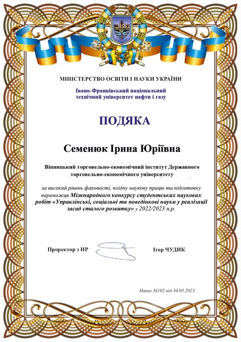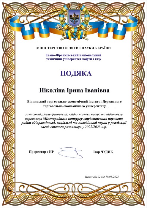 Перемога в Міжнародному конкурсі студентських наукових робіт «Управлінські, соціальні та поведінкові науки у реалізації засад сталого розвитку»
