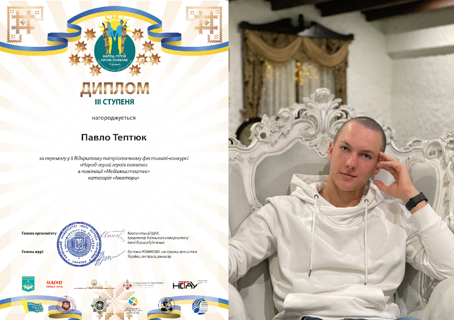- Павло Тептюк - Диплом III ступеня в номінації «Медіамистецтво» категорія «Аматори».