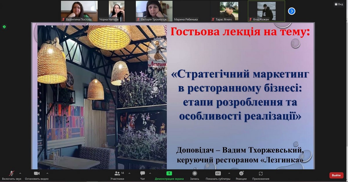 Для здобувачів вищої освіти проведено гостьову лекцію на тему «Стратегічний маркетинг в ресторанному бізнесі: етапи розроблення та особливості реалізації»