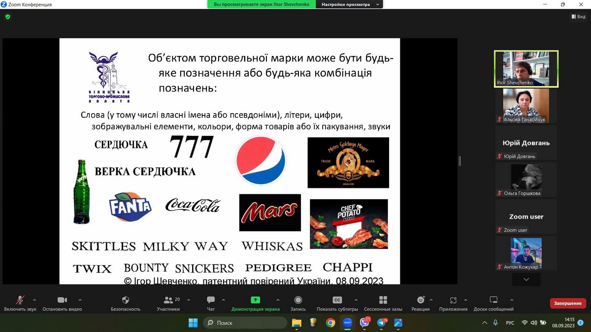 8 вересня 2023 року для здобувачів вищої освіти спеціальності 075 «Маркетинг» (ОП «Маркетинг» ОС «магістр» та ОП «Маркетинг» ОС «бакалавр») відбулася зустріч з Ігорем Шевченком, представником у справах інтелектуальної власності, патентним повіреним України.