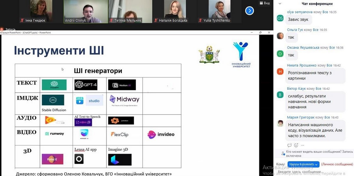 Мета заходу: розширення можливостей викладачів щодо використання сучасних інструментів штучного інтелекту, які можуть бути використані у вищій освіті та наукових дослідженнях.