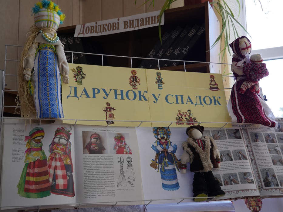 Пані Ніна ознайомила здобувачів вищої освіти та співробітників бібліотеки з історією виникнення ляльки-мотанки, її сакральним значенням, різновидами та технікою виконання. Бібліотекарі доповнили захід тематичною книжково-ілюстративною виставкою «Дарунок у спадок».